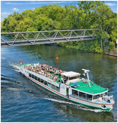 Wir starten mit der MS Havelglück vom Lindenufer in Spandau, durchfahren die Schleuse Spandau