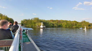 Wir starten am Lindenufer, passieren die Spreemündung und biegen in den Ruhlebener Altarm ein. Hier bekommen Sie einen Einblick auf die Spandauer Schiffswerft und das große Tanklager.Von hier aus geht es zurück bis zur Altstadt Spandau, weiter zu den Schiffsanlegestellen am Ziegelhof, der Schiffsbunkerstation und vorbei am Südhafen bis zur Freybrücke.Wir passieren den Pichelssee, das Pichelsdorfer Gemünd vorbei am Schildhorn bis zum Stößensee. Hier wenden wir und fahren zurück zum Lindenufer..