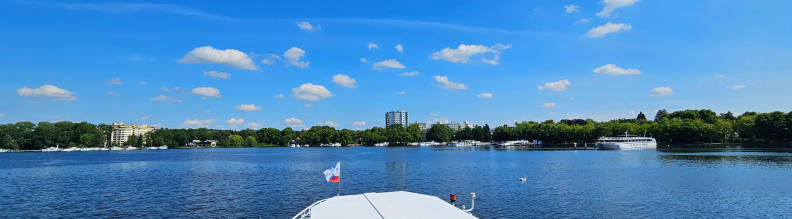 Vorbei an der Altstadt Spandau geht es durch die Schleuse Spandau auf die Oberhavel. Wir passieren den Spandauer See, die Wasserstadt Spandau und den Tegeler See mit seinenmalerischen 7 Inseln.Auf dem Rückweg geht es mit Blick auf die Spandauer Zitadelle vorbei an der Insel Eiswerder und wieder durch die Schleuse Spandau, vorbei an der Spreemündung und der Altstadt bis zum Lindenufer.