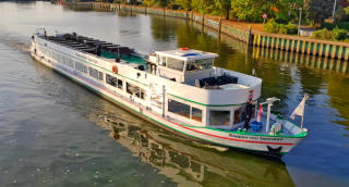 Länge: 42,90 m, Breite: 6,22 m, Tiefgang: 0,90 m, Motor: 2x Deutz 1013 169 KW