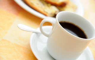 Stück Kuchen und ein Pott Kaffee.