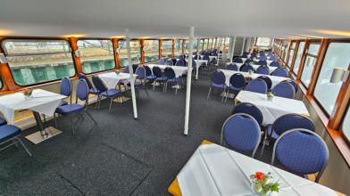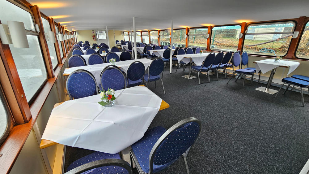 Salon: 110 Sitzplätze, Oberdeck: 100 Sitzplätze mit flexibler Bestuhlung