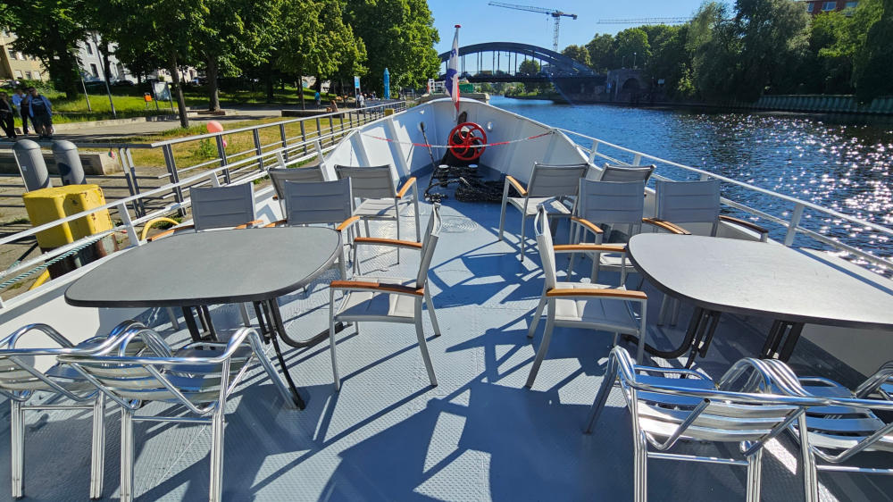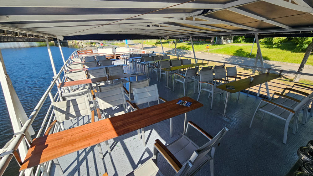 Vordeck: 20 Sitzplätze, Achterdeck: 15 Sitzplätze