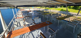 Das Oberdeck ist zu 2/3 mit einem Zelt überdacht.