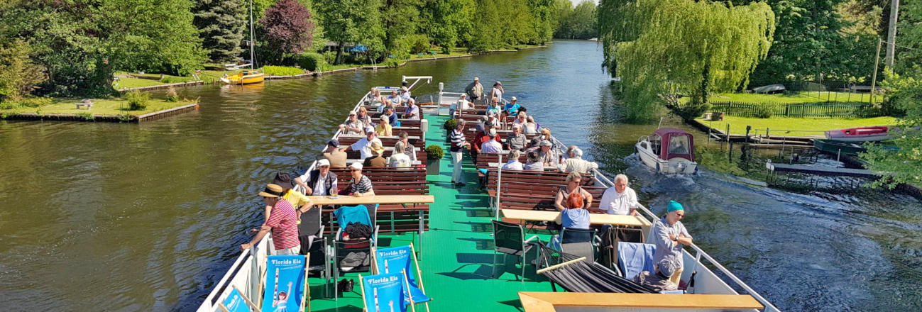 Abfahrtsort: Spandau LindenuferAnlegestelle Reederei Lüdicke(Gegenüber Lindenufer 39, 13597 Berlin)Termine:Montag, 19.5. & 21.7.2025 um 10.00 UhrFahrzeit: ca. 9 StundenFahrpreis:Erwachsener 40,00 € Kind 6-16 Jahre 50% ErmäßigungKind unter 6 Jahre kostenlosErmäßigung:Auf allen Linien- und Tagesfahrten von Montag bis Samstag, bei Hin- und Rückfahrten. Bei Teilstrecken, Schiff und Bus Kombitouren, Eventfahrten und an Feiertagen keine Ermäßigung.Schwerbehinderte, Senioren ab 60 Jahre, Studenten, Schüler & Arbeitssuchende erhalten 3 € Ermäßigung.