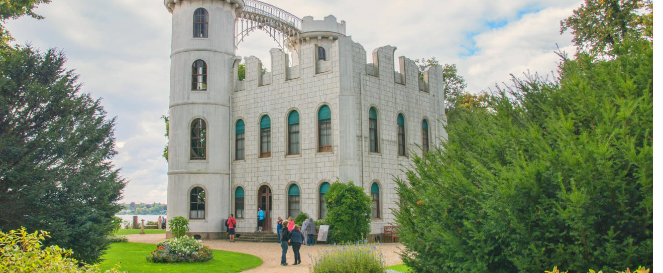 Die Hinfahrt erfolgt um 11.45 Uhr ab Lindenufer mit unserer „Potsdam-Rundfahrt“. Vorbei am Südhafen, der Villa Lemm, dem Grunewaldturm und der Insel Lindwerder passieren wir Gatow und Kladow bis wir auf den Großen Wannsee gelangen.Nach dem Passieren des Strandbades und der Anlegestellen am Wannsee geht es vorbei an Kälberwerder bis zur Pfaueninsel (Festland). Hier können Sie das Schiff verlassen und mit der Inseleigenen Fähre auf die Insel fahren, um diese zu erkunden. Um 16.45 Uhr werden Sie mit einem unserer Schiffe auf dem Rückweg der 7-Seen-Fahrt wieder an der Pfaueninsel abgeholt. Aufenthalt ca. 3 Stunden.Für den Besuch der Insel ist zusätzlich eine Überfahrt mit der inseleigenen Fähre notwendig.Weitere Infos zur Insel und die Eintrittspreise finden Sie auf der Webseite der Stiftung Preussische Schlösser und Gärten Berlin-Brandenburg: zur Webseite.