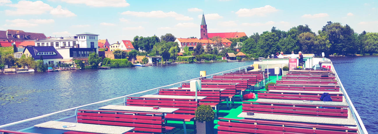 Abfahrtsort: Spandau LindenuferAnlegestelle Reederei Lüdicke(Gegenüber Lindenufer 39, 13597 Berlin)Termine:Montag, 2.6. und 1.9.2025um 09.00 UhrFahrzeit: ca. 11 Stunden (inkl. 2 Stunden Aufenthalt)Fahrpreise:Erwachsener ab Lindenufer Hin/Rück: 40,00 €einfache Strecke nach Brandenburg: 28,00 € Erwachsener ab Kladow Hin/Rück: 38,00 €einfache Strecke nach Brandenburg: 27,00 € Erwachsener ab Wannsee Hin/Rück: 36,00 € einfache Strecke nach Brandenburg: 26,00 € Kind 6-16 Jahre 50% ErmäßigungKind unter 6 Jahre kostenlosErmäßigung:Auf allen Linien- und Tagesfahrten von Montag bis Samstag, bei Hin- und Rückfahrten. Bei Teilstrecken, Schiff und Bus Kombitouren, Eventfahrten und an Feiertagen keine Ermäßigung.Schwerbehinderte, Senioren ab 60 Jahre, Studenten, Schüler & Arbeitssuchende erhalten 3 € Ermäßigung. Anlegestelle am WannseeAufgrund von Baumaßnahmen an der Ronnebypromenade am Annleger S-Bahnhof Wannsee kommt es bis einschließlich 2025 zur starken Beinträchtigungen bei der Zuwegung. Bitte planen Sie genug Zeit für die Anreise und die Suche vor Ort ein.
