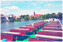 Genießen Sie die Naturlandschaft der Havelseen von Spandau bis zur Stadt Brandenburg!Diese Tour führt uns vom Lindenufer in Spandau über die Unterhavel, vorbei an Kladow (mit Halt),dem Großen Wannsee (mit Halt), der Pfaueninsel und weiter durch den Sacrow-Paretzer-Kanal bisnach Ketzin. Von dort aus geht es über den Trebelsee weiter die Havel zu tal bis wir nach ca. 4,5 Stunden Fahrzeit die Stadt Brandenburg erreichen. Am Neustädtischen Wassertor haben Sie ca. zweiStunden Zeit die Stadt zu entdecken, bis wir uns wieder auf den Rückweg machen.